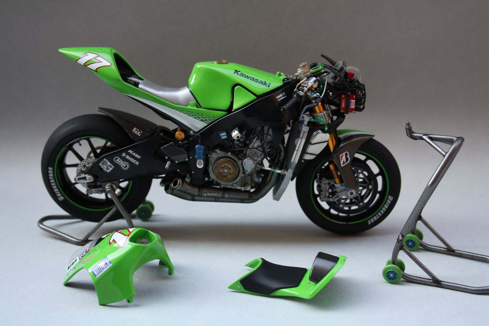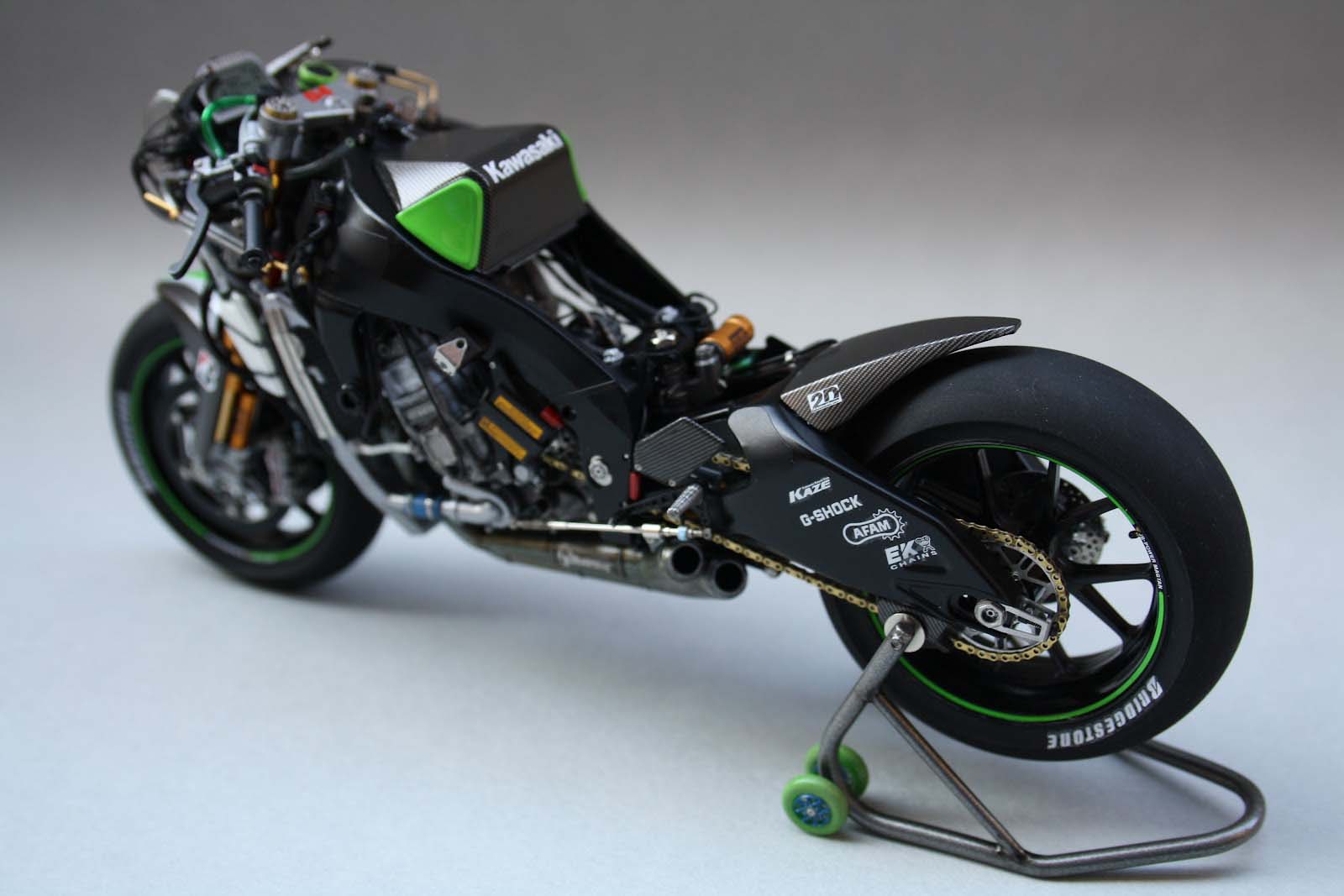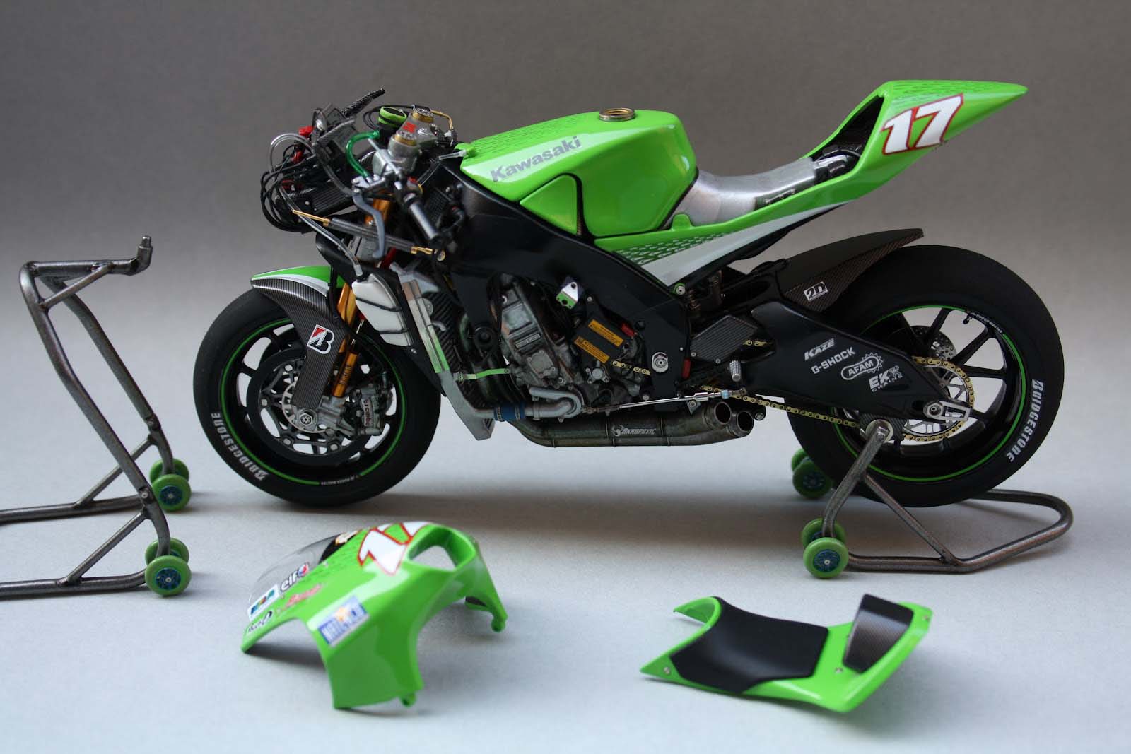 As Kawasaki has faded out of GP racing, and only exists in CRT form, De Puniet has come into his own as a rider, though through unfortunate circumstance has found his underrated riding skills relegated to Team Aspar’s Aprilia ART CRT — instead of factory-supported bike, like the ZX-RR seen here…which, if you haven’t already noticed, is actually a hyper-accurate scale model of the the real thing.