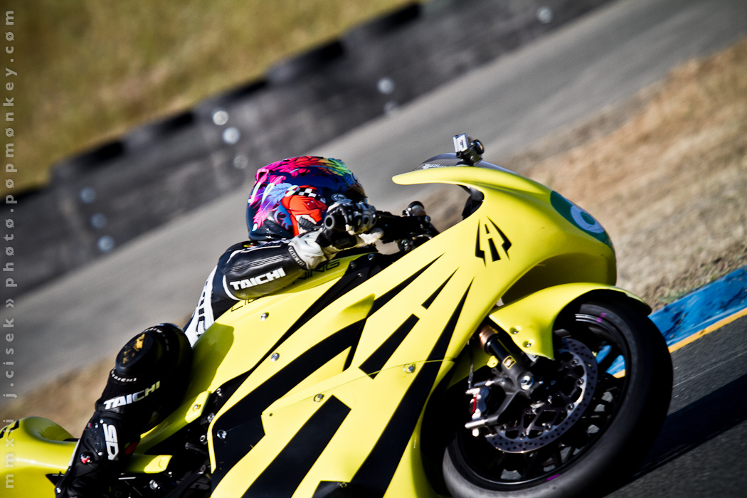 While Lightning has shown considerably more polish than in past rounds, the team has had its own setbacks with reliability, including one incident which saw the chain adjuster bolts on the Lightning Mk. II sheer apart, dropping the chain off the sprocket, and locking up the rear wheel of Barney’s bike. Barnes was not pleased with this, but fared better than the two Steve’s on-board the 2012 Brammo Empulse RR.