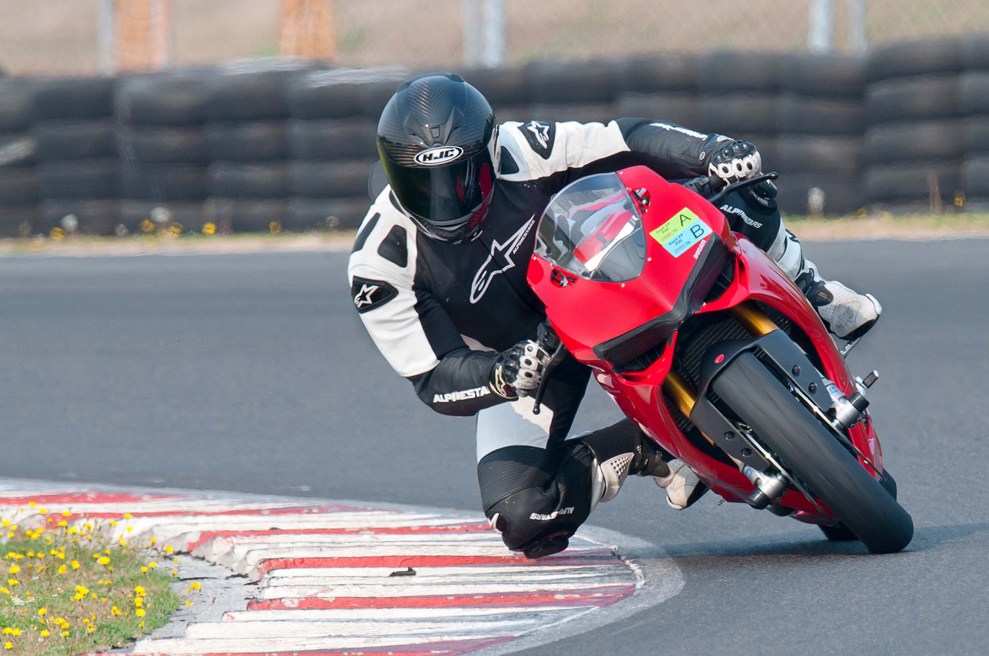 Hard on the brakes into Turn 7 and the start of second chicane, a quick flick left-to-right brings you onto Turn 9, and back onto the drag strip for another go of things. Since we rolled the Ducati 1199 Panigale S right out of MotoCorsa and onto the track, the suspension settings we used were stock to whatever they were when the bike left the showroom floor. Using the Panigale firstly to learn the track, and secondly to set at least a basic benchmark for a comparable ICE machine, we didn’t develop the Panigale beyond the way it arrived, street tires and all. Even so, the Panigale abides.