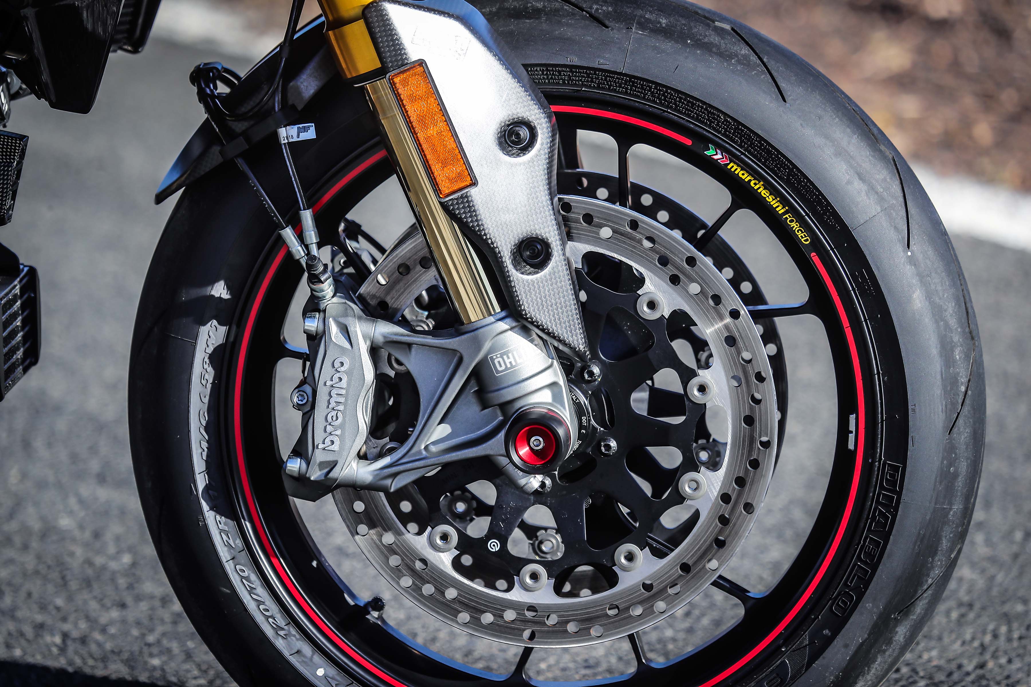 While the 950 SP retains the same geometry as the 939 SP, Ducati says that is has worked extensively with the Swedish brand to improve cornering prowess of the Öhlins suspension pieces.