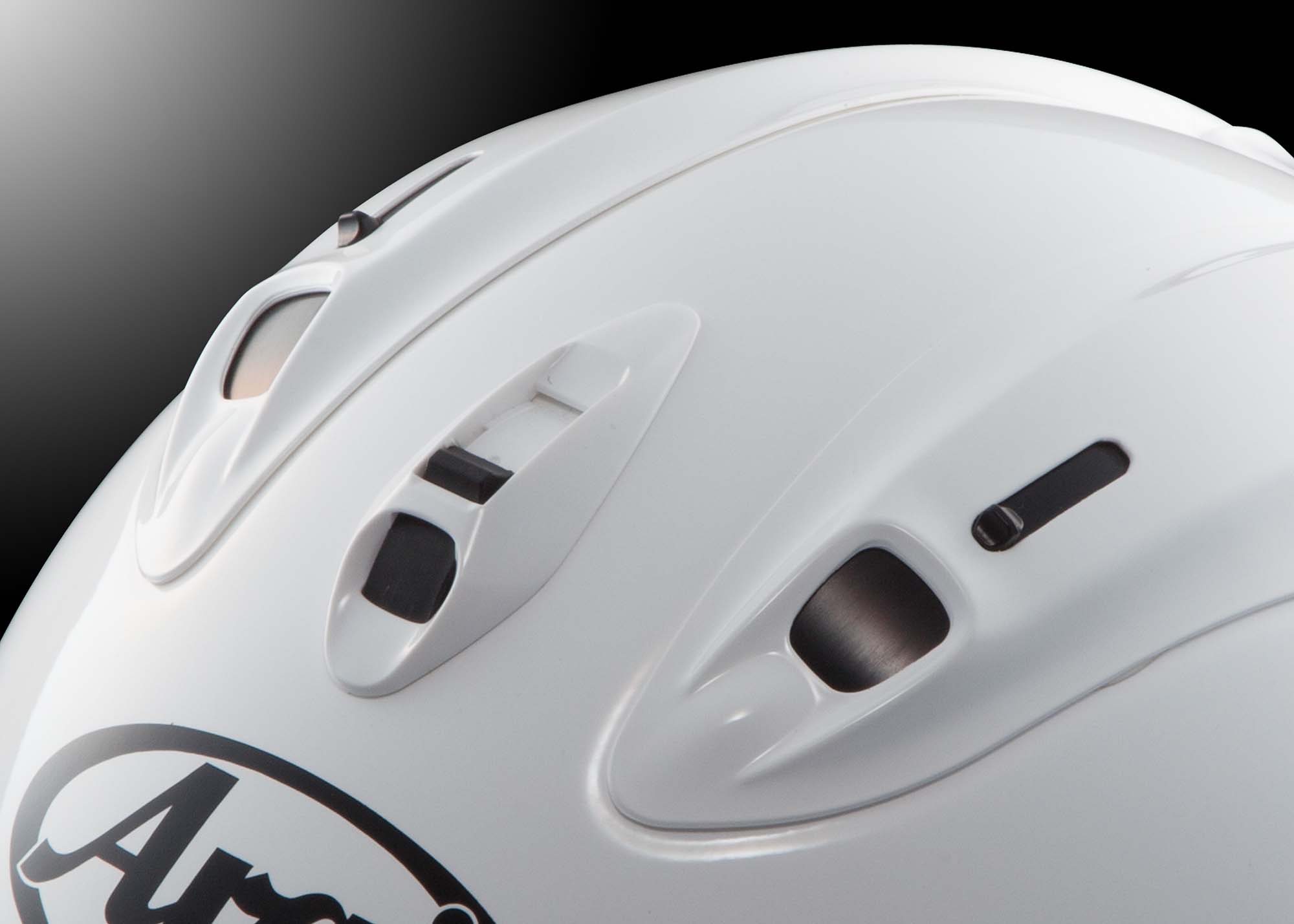 The top-center vent brings in 11% more air than its predecessor, and is a noticeable improvement. The Corsair-V was a well-venting helmet, and somehow Arai has found a way to improve upon this. Kudos.