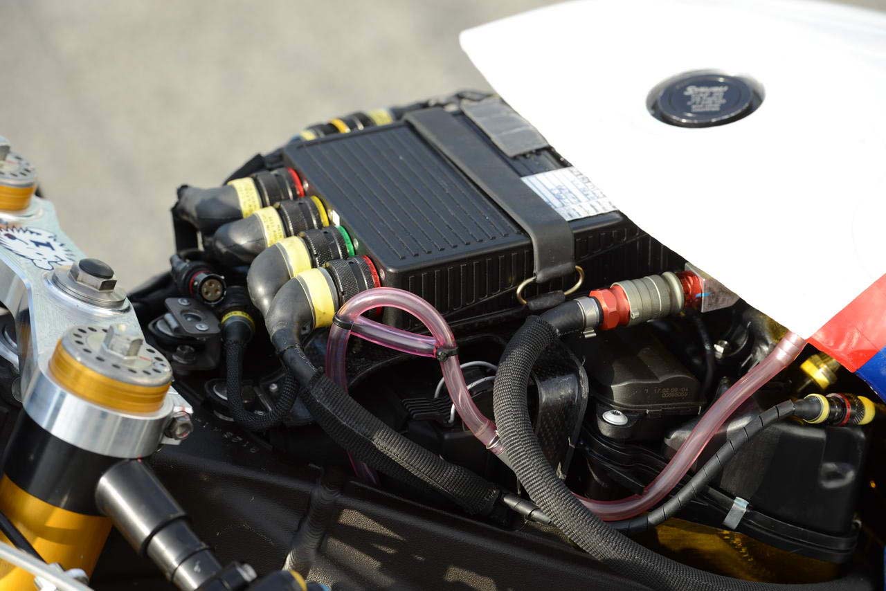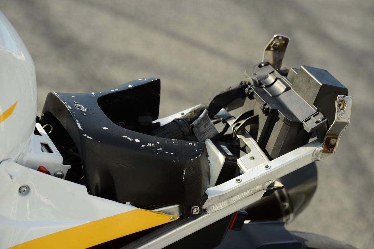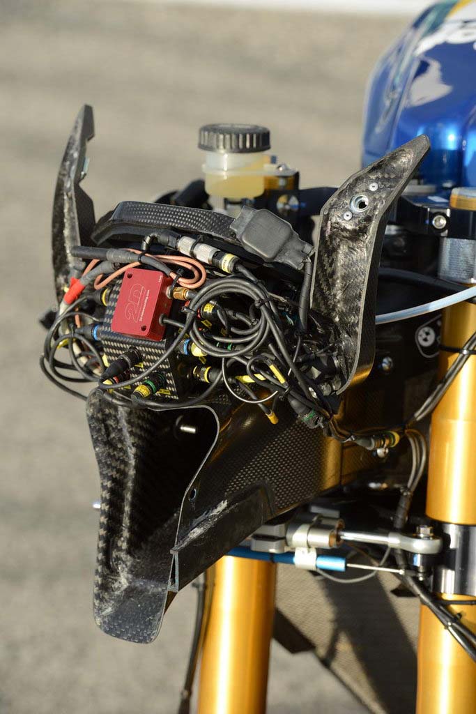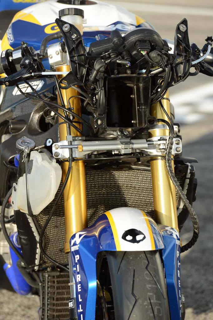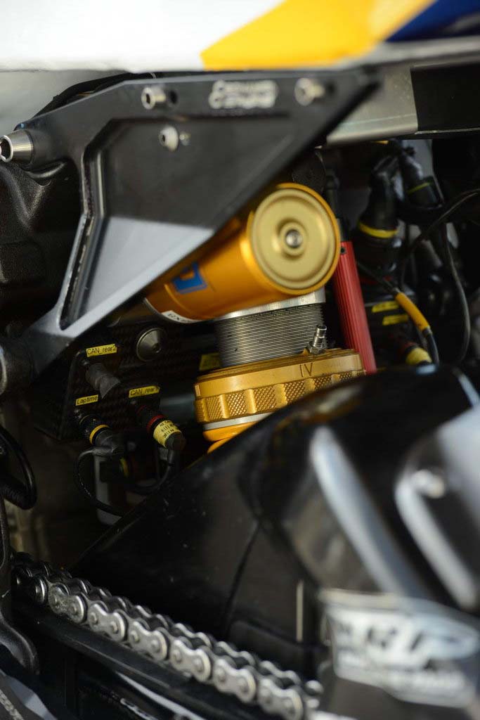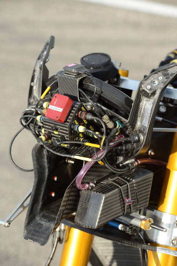 Michel’s suspension setting appears to me to be very well balanced and the motorcycle reminds me right of away of Ayrton Badovini’s bike which I tested in 2011. The suspension is set-up much softer when compared to Haslam’s bike, and this turns the Team BMW Motorrad Italia Goldbet motorcycle into a much easier bike to ride than the factory team bike. The downside of that equation is that in the slow turns the bike doesn’t offer the same confidence and feedback of the Haslam’s bike, especially when it comes to the front-end.