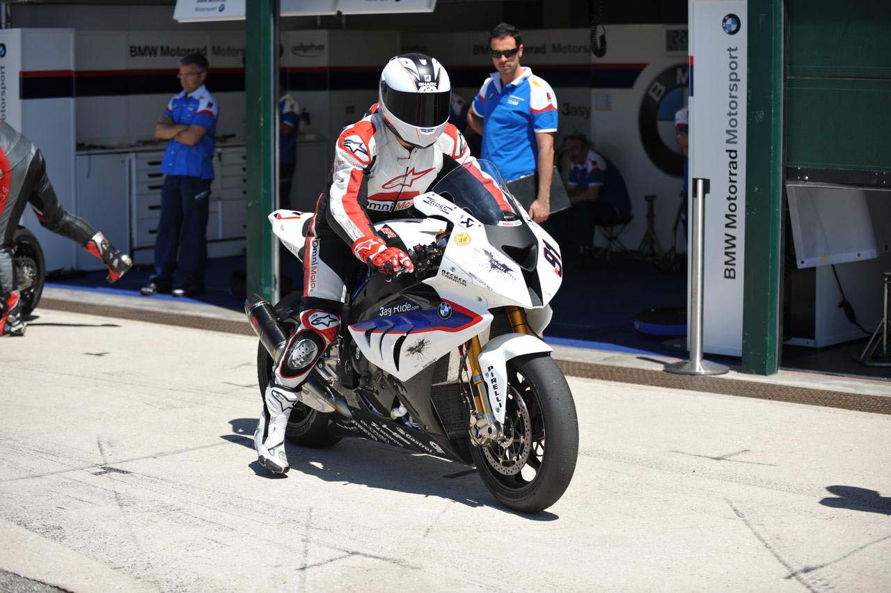 For the format, there are now four bikes to try. The warm-up laps to learn the track will be done on a stock S1000RR street bike, followed by a ride on the Superstock bike belonging to Sylvain Barrier and Lorenzo Baroni. Following these we get some laps aboard the BMW Motorrad factory bikes of Leon Haslam and Marco Melandri, and the day on the BMW Motorrad Italia machines that are campaigned by Ayrton Badovini and Michel Fabrizio.