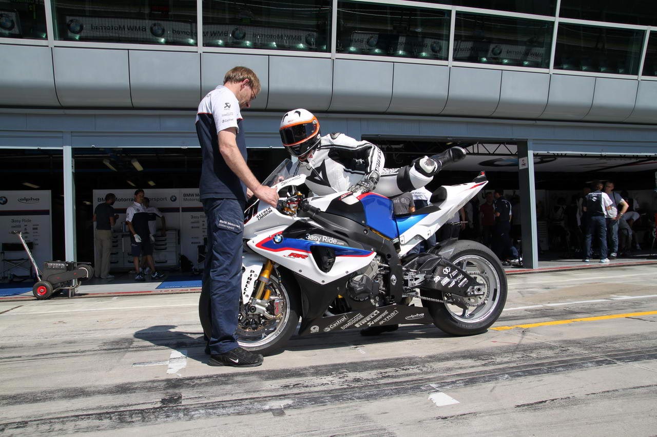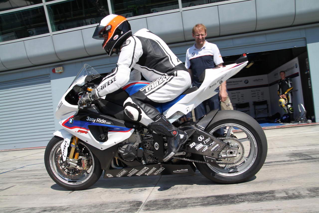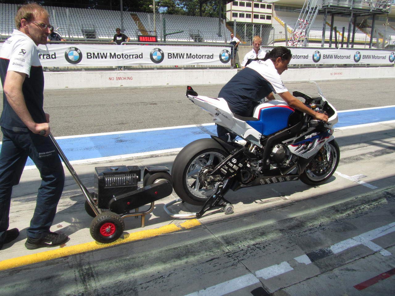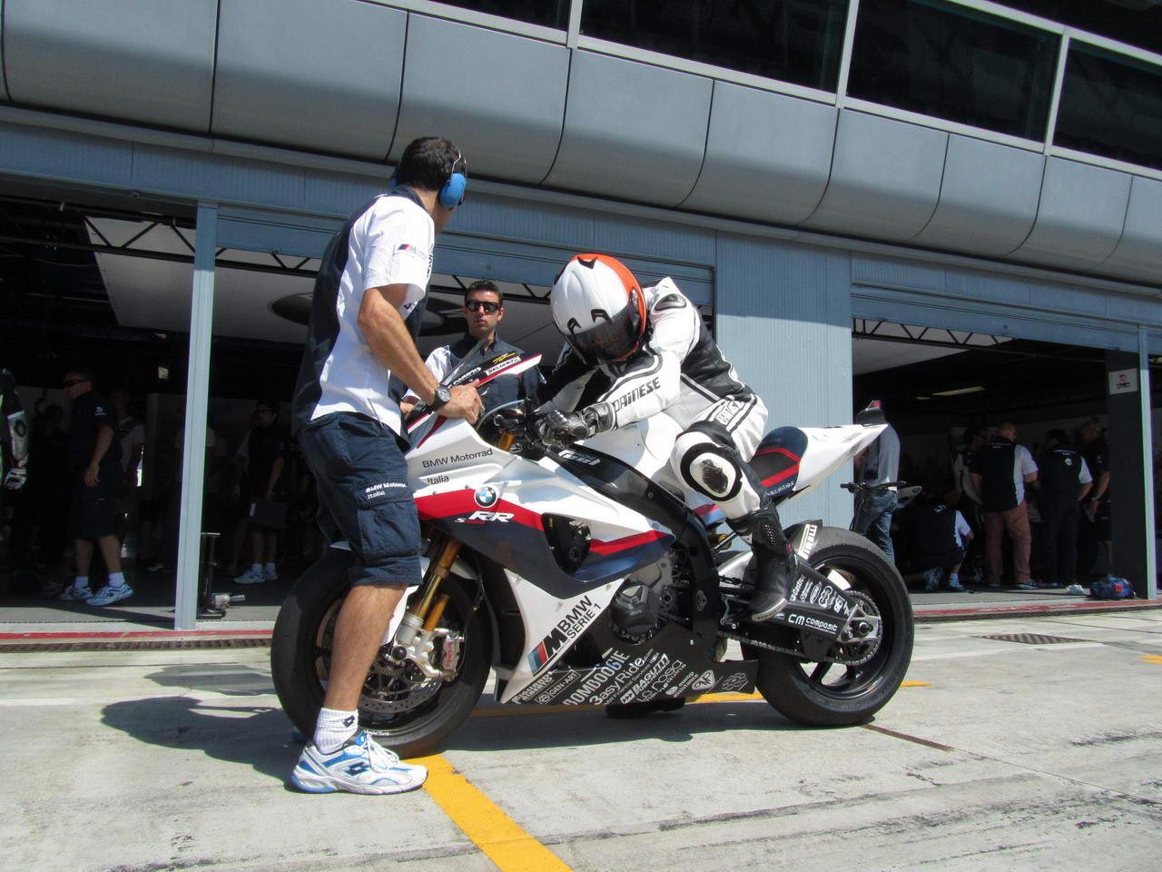 The first surprise in the Monza test came from the S1000RR Superstock bike of Sylvain Barrier. I had tried this bike last year when Ayrton Badovini was riding on it, and even though I was working for another brand, I had enjoyed the ride enormously. With now a year having passed, I sat on this bike almost petrified by the differences that had occurred to this motorcycle over the past months. Ayrton’s bike from last year was easy, with supple suspension, and was well manageable in the braking zones, while Barrier’s bike from this year was hard like a rock. The French rider expects a very controlled ride, so consequently his forks have very rigid settings. This means that one must be absolutely on top of what he wants to do with the bike, because with a front-end that is so stiff, there are few possibilities for trajectory changes once you are set in a turn.
