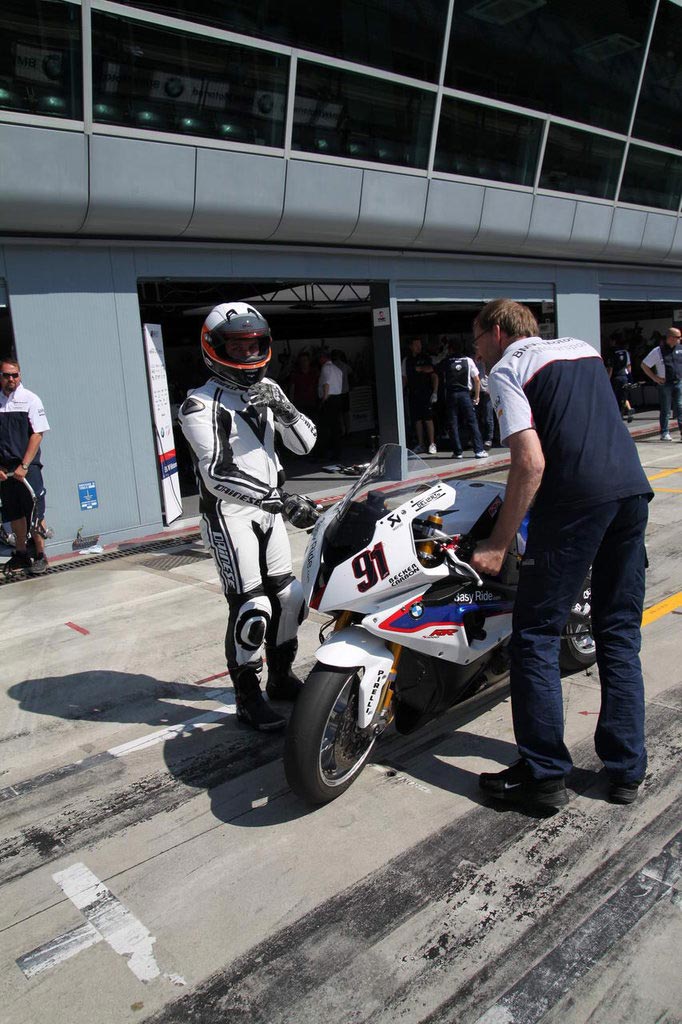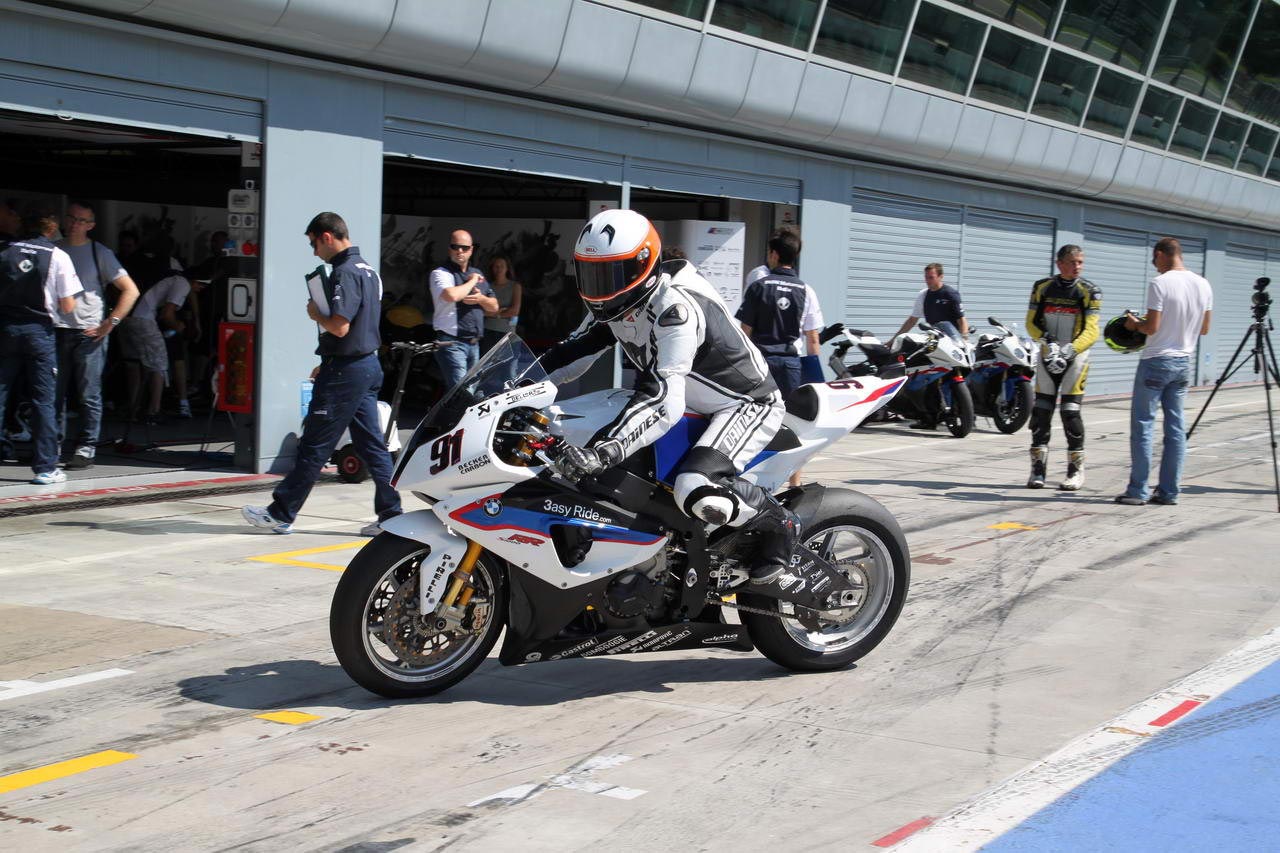 I already participated last year in the test organized by BMW Motorrad Italy with the S1000RR Superstock, with which only a month later Ayrton Badovini used to crown himself the 2010 World Champion, and now that BMW Motorrad has redoubled its efforts with the WSBK Championship, the racing bike test has become an international event to which the whole international motorcycle press fleet is invited. The test in question entailed a progression that started us on a street legal, bone-stock, S1000RR, which helped us to warm up and get used to the newly refinished Prima Variante curve in Monza.