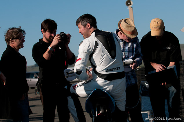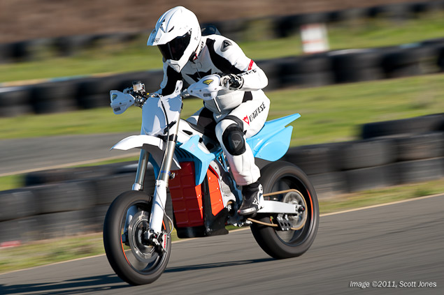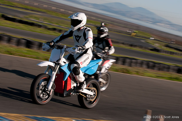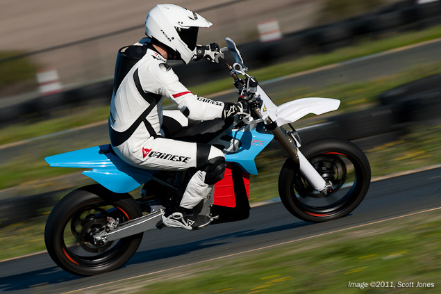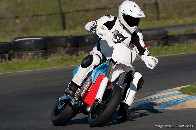 It is a rare opportunity when a journalist gets to swing a leg over a prototype motorcycle. Virtually assured by definition to have perceivable flaws, effectively all the companies in the motorcycle industry prefer to keep the public and media at arm’s length until they have massaged their work into something that is ready for primetime consumption. Testing the BRD RedShift SM electric supermoto at Infineon Raceway today, we could attribute our good fortune to the fact that BRD Motorcycles (faster-faster.com) does not subscribe to the motorcycle industry’s status quo.