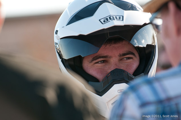 Riding the KTM around Infineon’s karting track is a workout in its own right. By the time you’ve downshifted, made your corner entry, hit the apex, and twisted the throttle for your exit, you are already ready to repeat the process for the very next turn. Better than an all fen-phen diet, I lost 5 lbs from this process, was finally able to button a pair of jeans I used to wear in college, and emptied over two liters of water out of my sweat-filled helmet (AGV AX-8 Dual Sport, for those who are interested). Relying heavily on my extensive track time on “proper” road circuits, it took the full first session to decipher exactly what I was doing with the bike…let alone what nonsense I was doing with my foot off the peg.