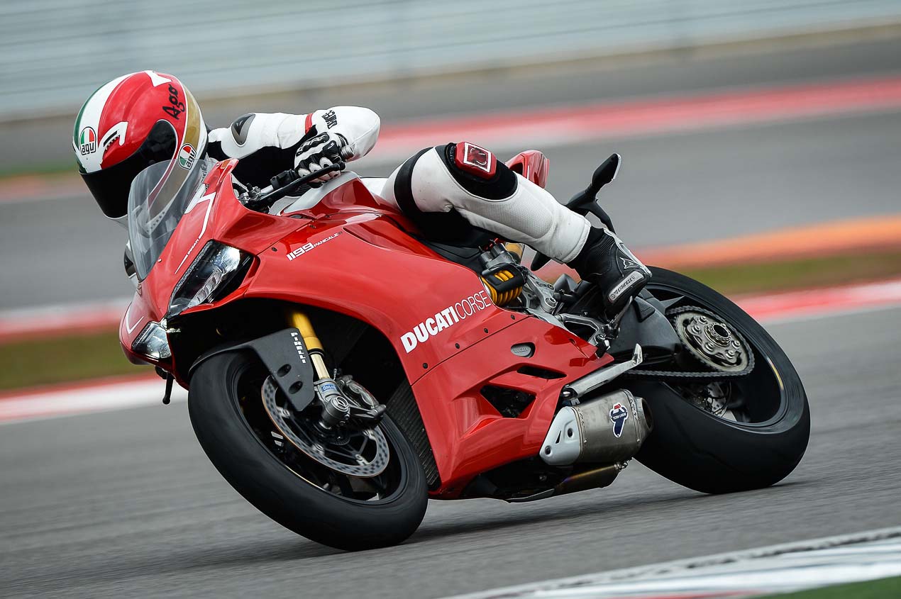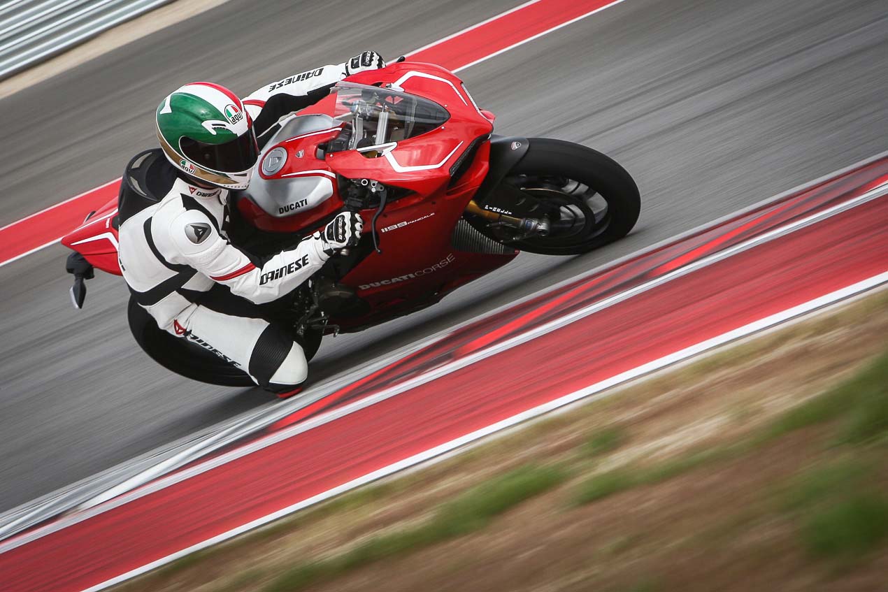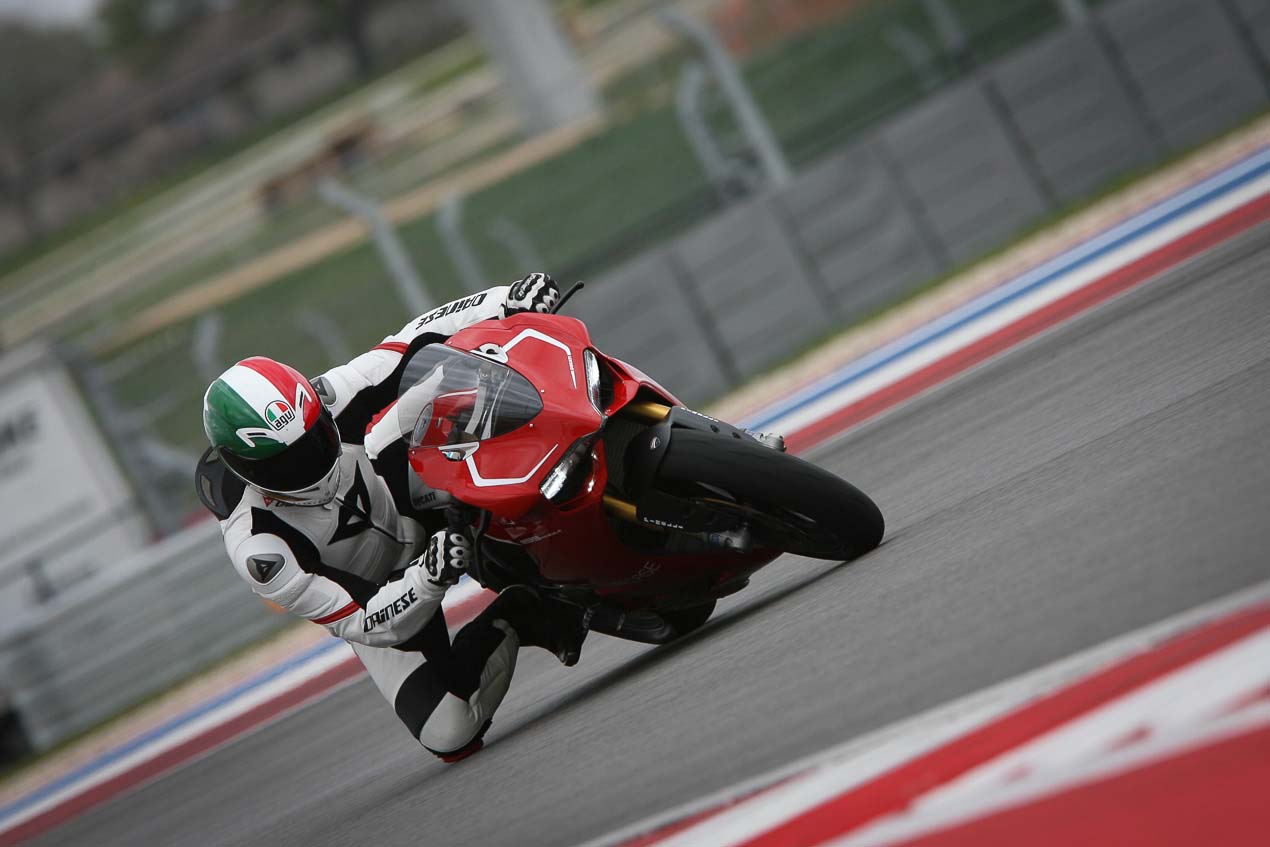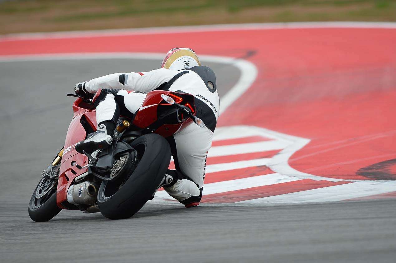 A symptom that is likely a combination of chassis geometry and the rear-wheel torque produced by the motor and gear ratios, the Panigale R has noticeably less stability than its lower-spec counterparts. Flying down COTA’s kilometer-long back straight, where strong gusts were present, the Ducati 1199 Panigale perceptibly wobbled while hard on the gas, which you can clearly see from the on-board footage of our flying lap around the Circuit of the Americas track during the press launch.