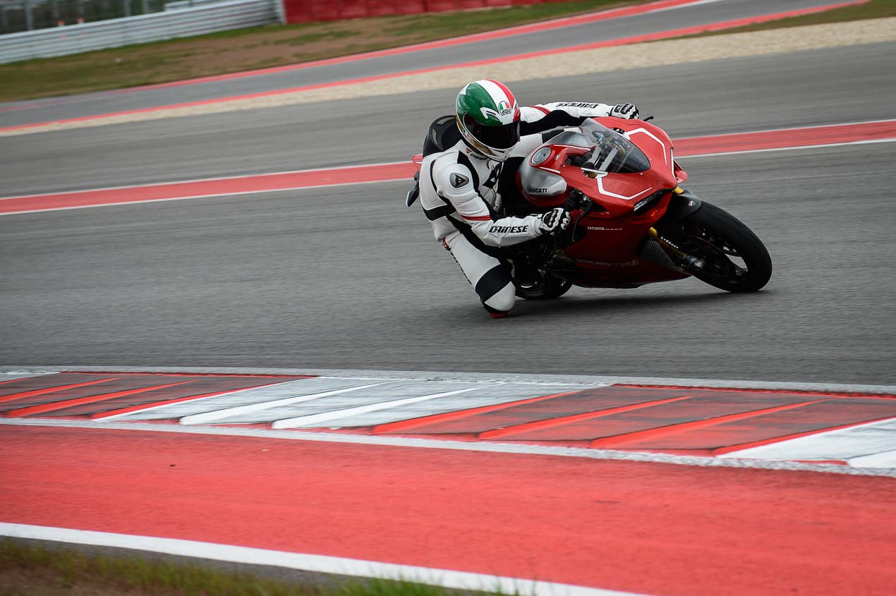 While the peppier Superquadro motor is surely the highlight for many superbike fans, finding our zen moment while on the Panigale R was all about the chassis. As you can imagine, dropping from 175 mph down the back straight to the 35 mph apex of Turn 12 takes a considerable amount of braking and chassis stability, but the Ducati 1199 Panigale does it with ease. Brembo’s M50 calipers, in conjunction with Pirelli’s Diablo Supercorsa SC tires, are a dream up front, and constantly encourage you to find the real limits to COTA’s deceiving braking points (hint: it is more than halfway up the hill for the intimidating entry into T1).