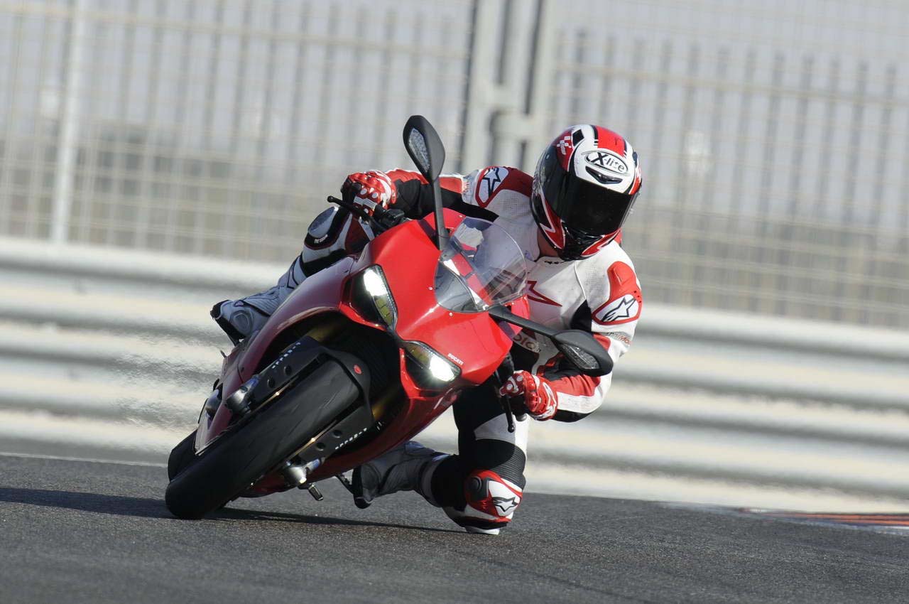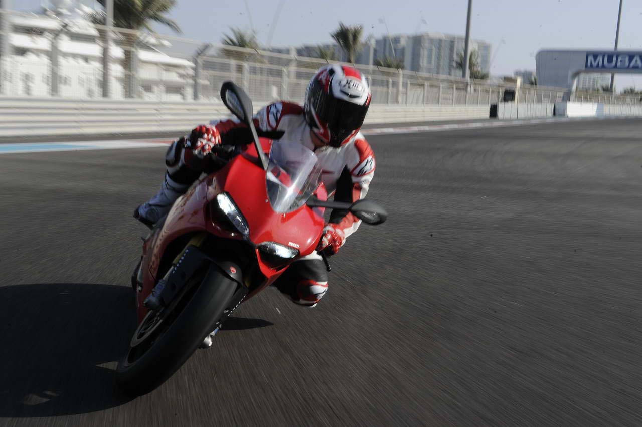 At the Yas Marina Circuit there are three very tight chicanes, one of which is a double-apex. The Panigale dives into this section as if it was made to have fun in these tight turns, and it sets into the bend with a very honest and assuring feeling — first on the front end followed by the rear without any issues.