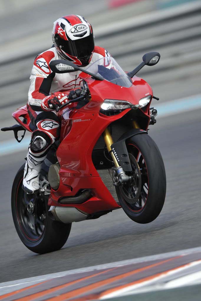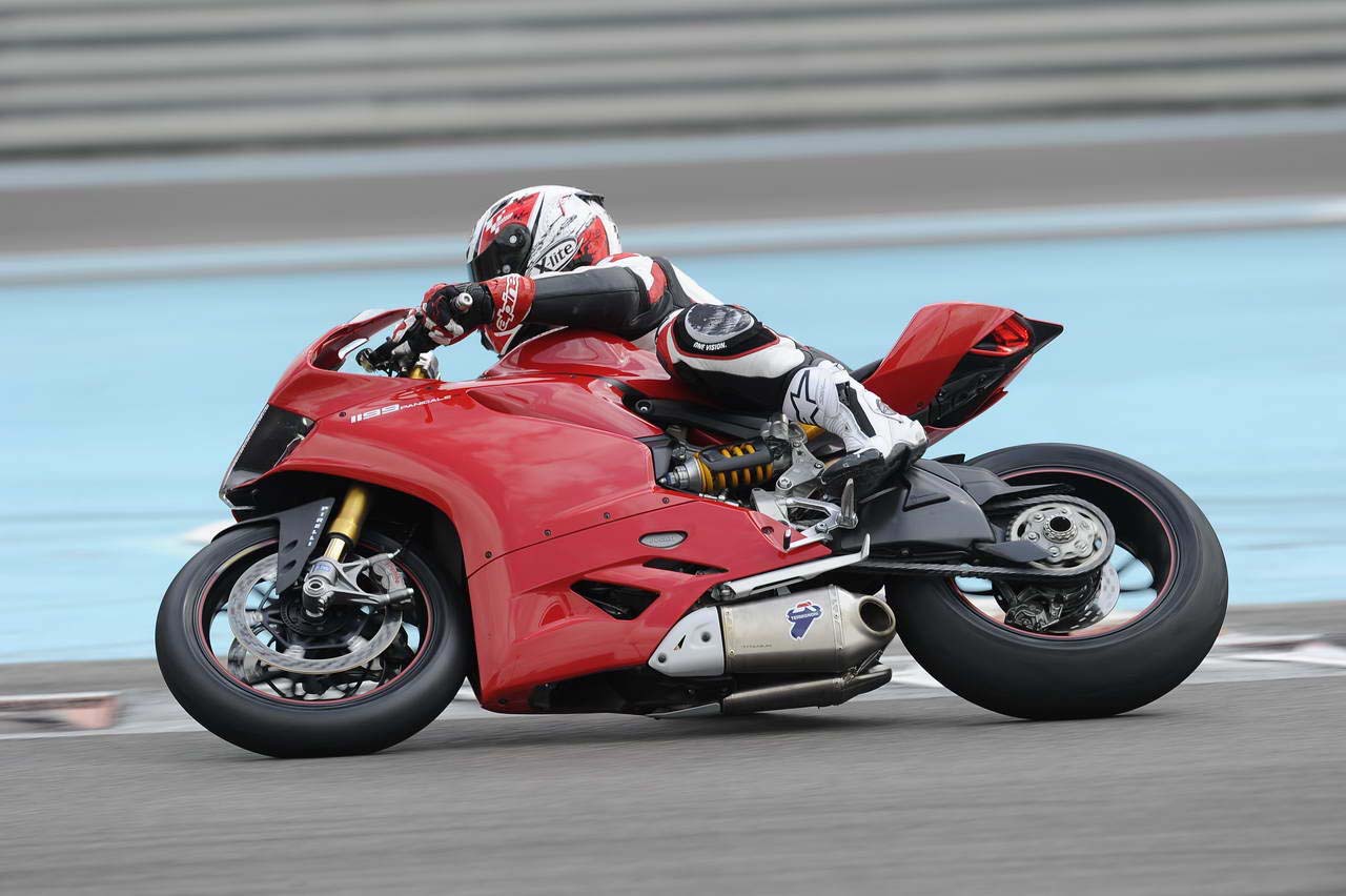 This incredible ease in attacking the turns might give pause when considering potential loss of stability on the fast straights, but the 1199 puts these fears instantly to rest. All the solid front-end traits that are typical of a Ducati superbike remain intact with the Panigale, and in the long 3rd and 4th gear curves of the front end tracks true with fine precision.