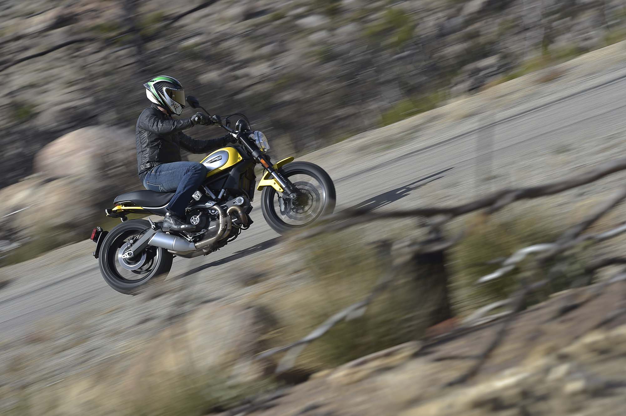 The Scrambler’s exhaust does its job perhaps too well, masking the thump from the 803cc v-twin. Since most owners will be replacing it anyways (with high-mounted pipes, perhaps?), it’s really not a big issue.