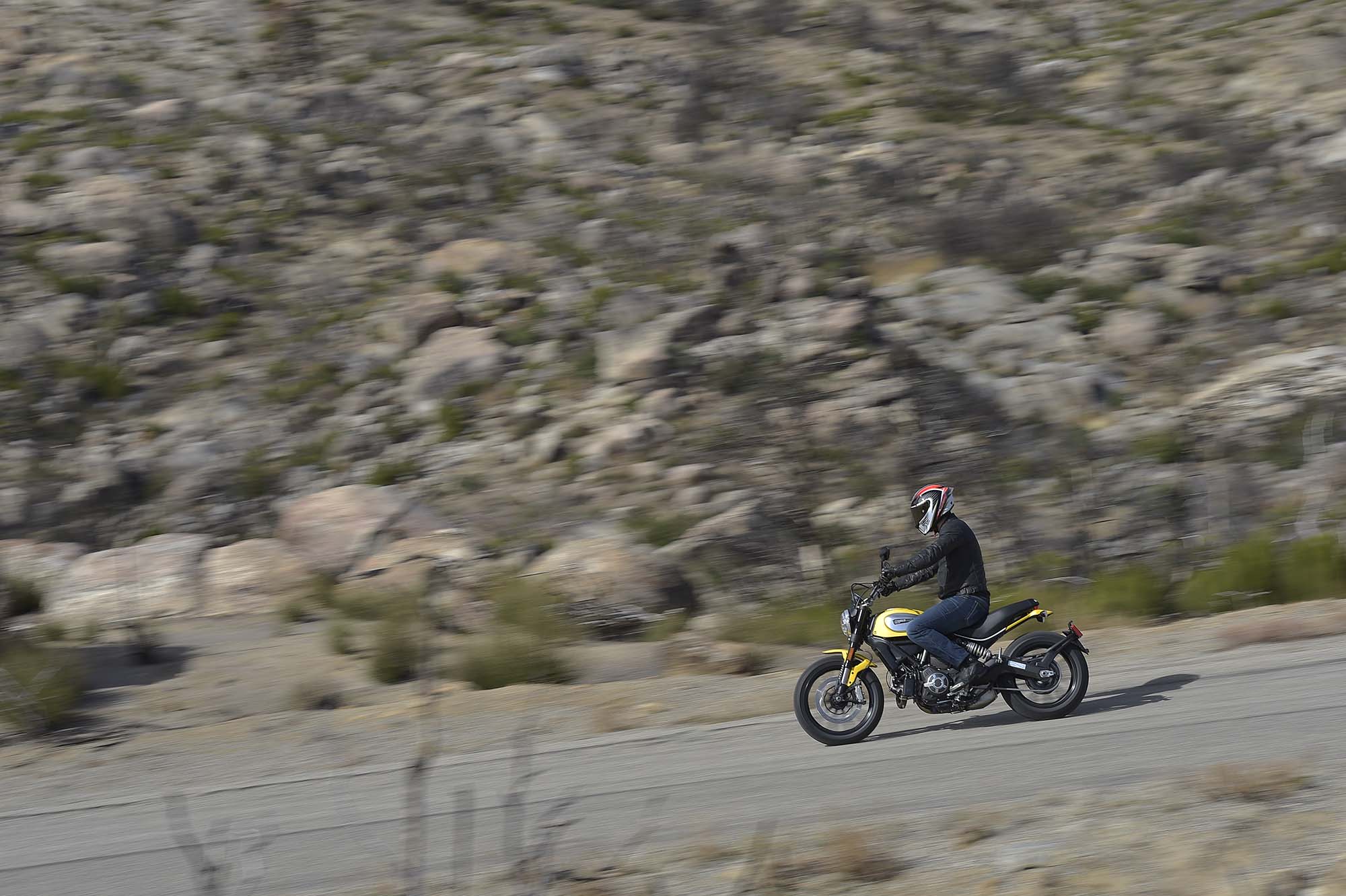 On-road the Scrambler handles well, thanks primarily to its lightweight package and low center of gravity. The suspension wasn’t as soft as was expected, showing an on-road bias. Bumps were dulled, not muted, and feedback to the rider was fairly crisp for something with “scrambler” in its name. As can be expected at the entry-level segment, not much is adjustable beyond the pre-load.
