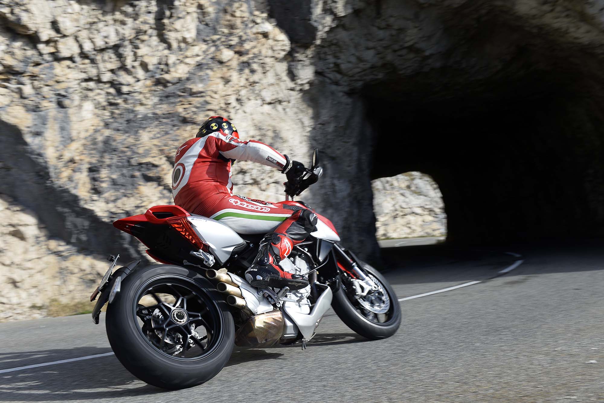 MV already updated the FI maps on earlier bikes which should smooth out things, and there is a definite improvement on this new model. However, the way the engine reacts to the initial throttle input is still under par. Once on the move it gets better though: the Mikuni throttle bodies behave OK under partial-throttle.