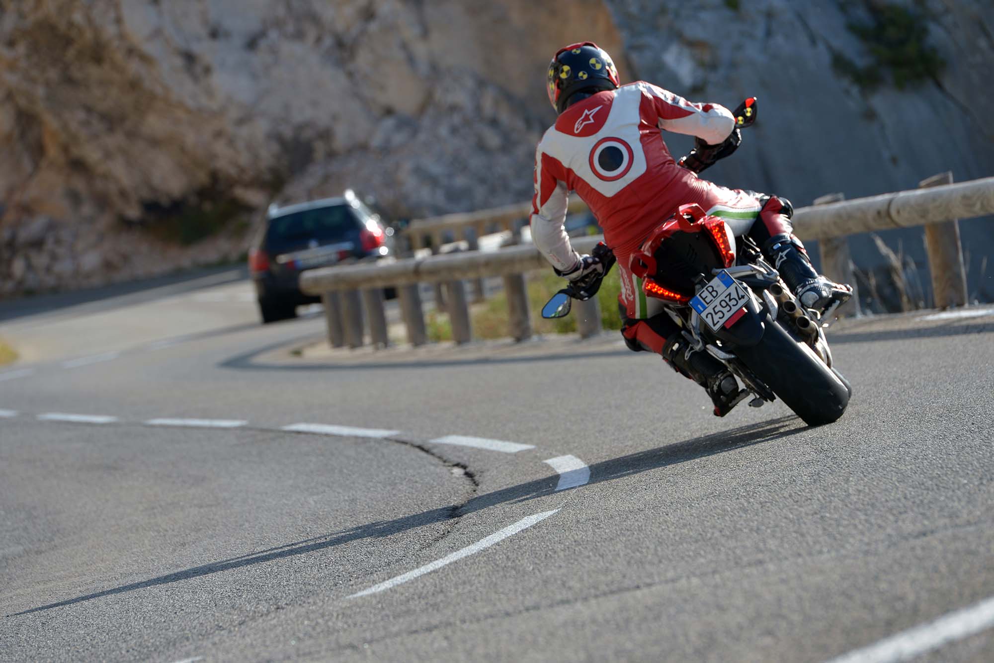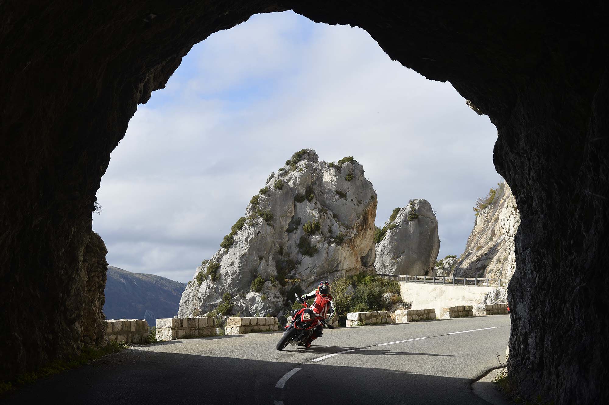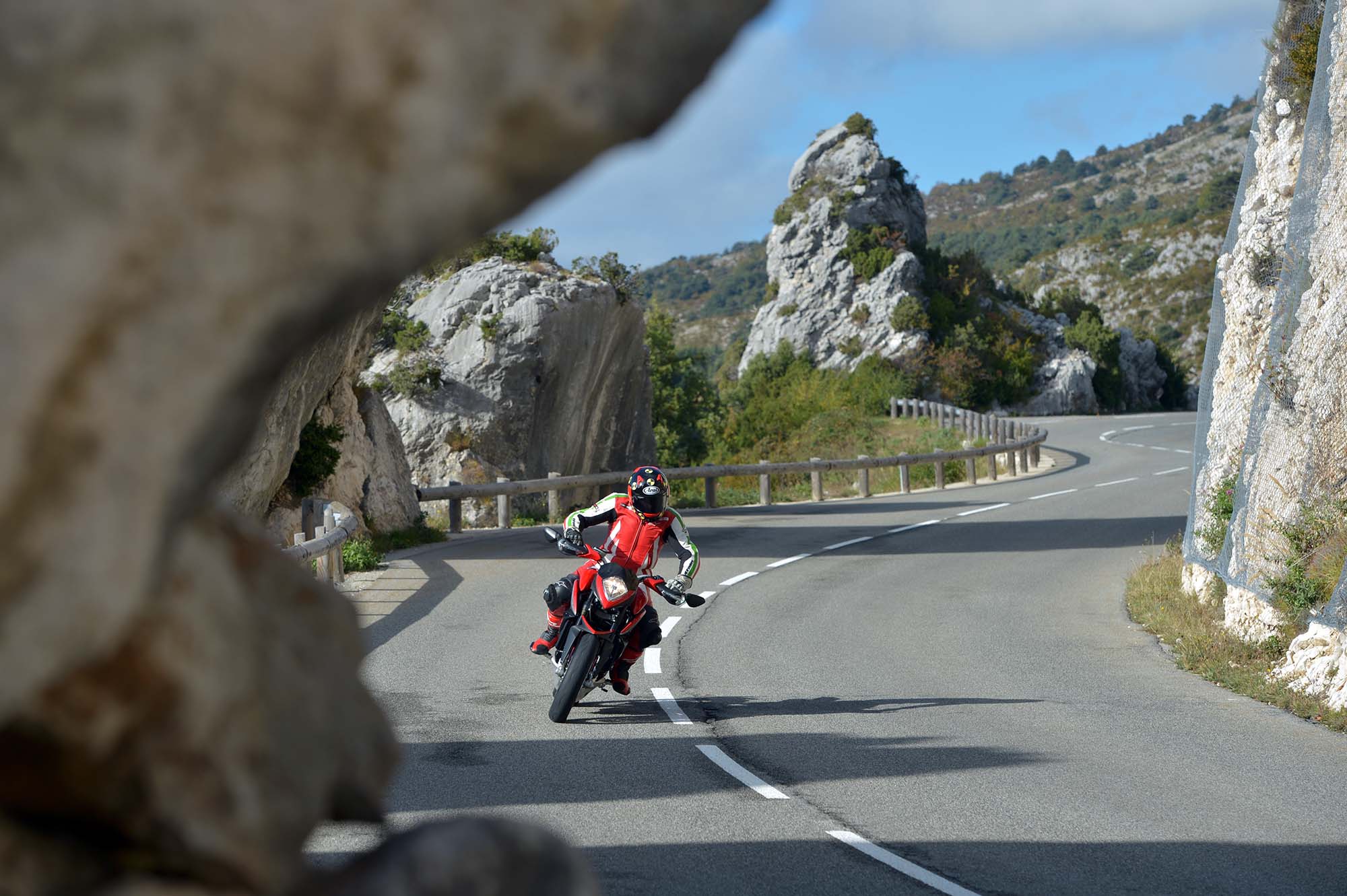 Our test ride took place around Nice, France, where there’s an abundance of tight mountain passes as well as fast roads. First our attention focussed on the throttle control of the 800 motor, which would hopefully improve on the questionable fuelling of its 675 and 800 predecessors.