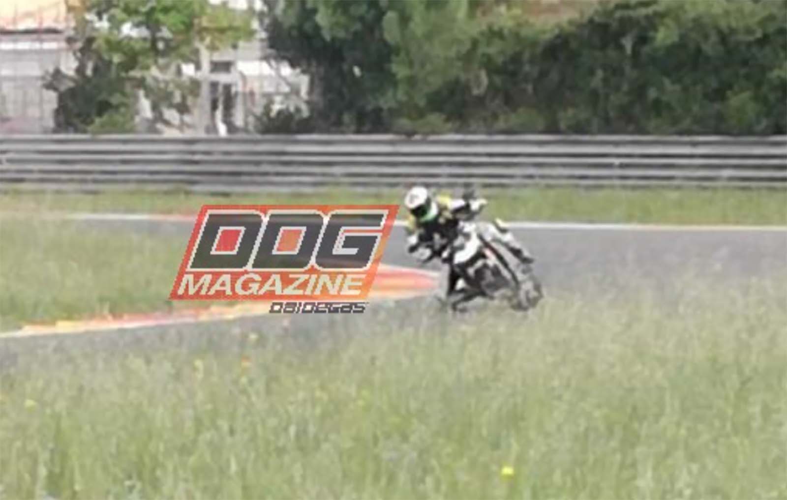 Now today, we get our first glimpse of the bike at work, as some of the worst “spy photos” ever show the model making laps at an undisclosed race course.